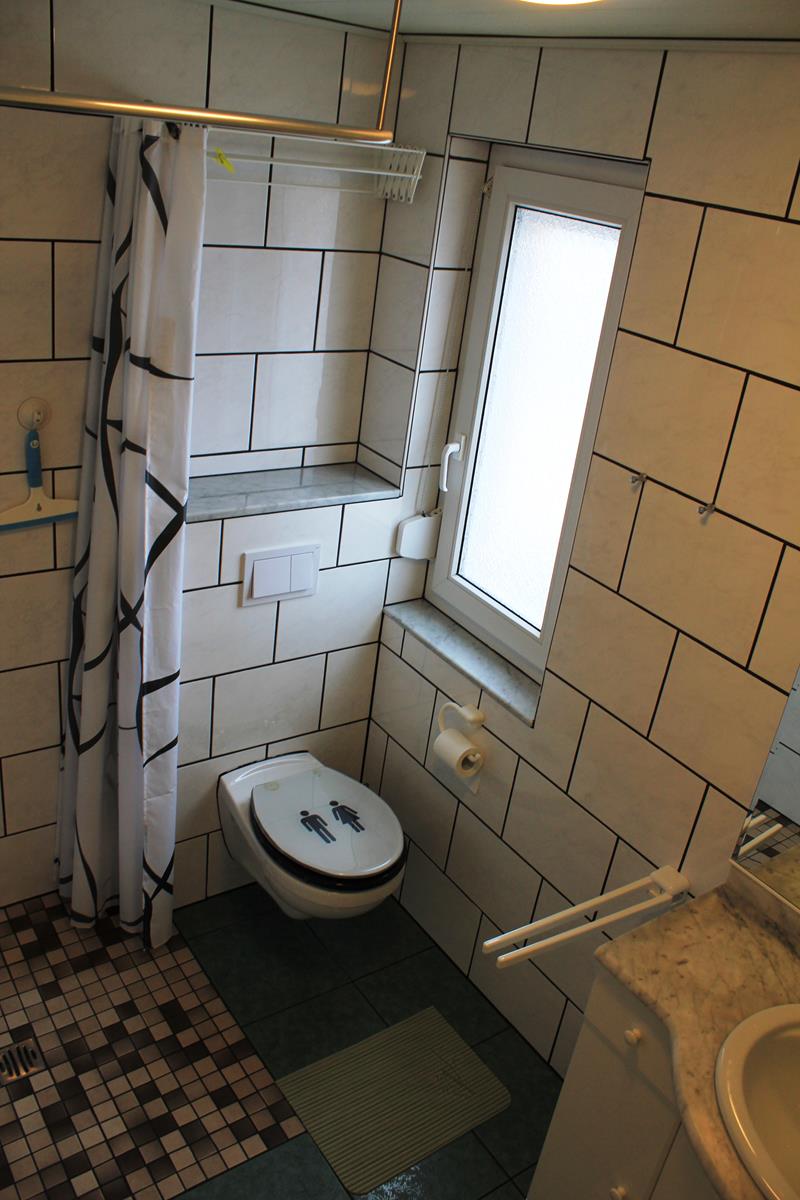 - Bad: mit Fenster, bodenebener Dusche, WC, Waschtisch und Handtuchtrockner