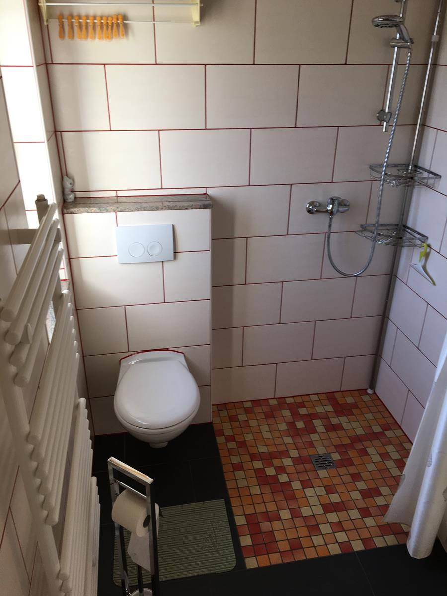 - Bad: mit Fenster, bodenebener Dusche, WC, Waschtisch und Handtuchtrockner